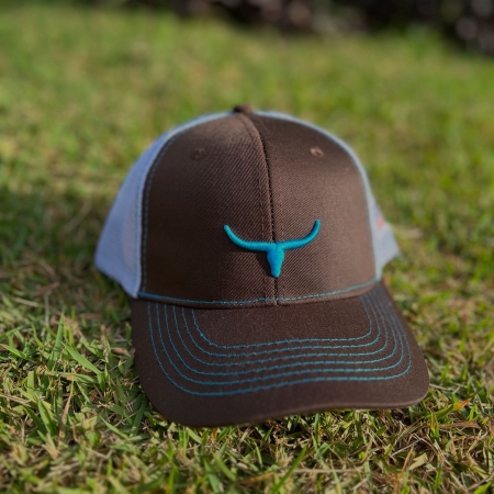 • BM2782 BONE MARROM LOGO CIANO/TELA BRANCA