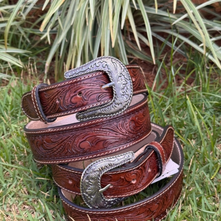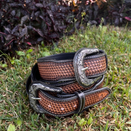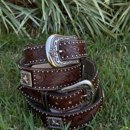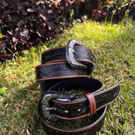 • CINTO COURO DESPONTADO BORDADO/CRAVINHO 7075