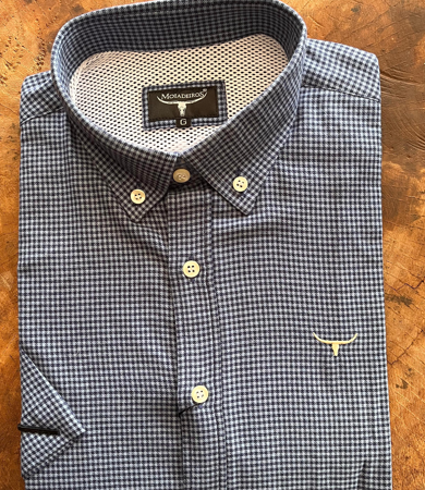 • CMC2441 CAMISA MC FLANELADO XD AZUL/LOGO BEGE