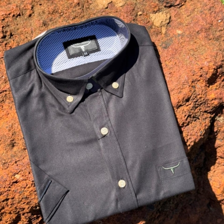 • CMC2501 CAMISA MC PRETO-C/BOLSO/LOGO VERDE