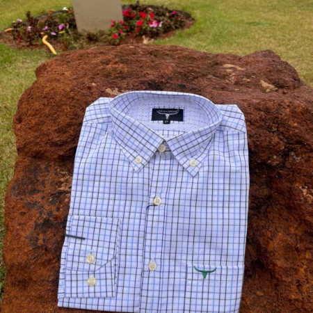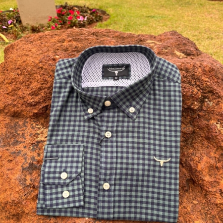 • CML2488 CAMISA MANGA LONGA XAD AZUL-VERDE/ LOGO BEGE