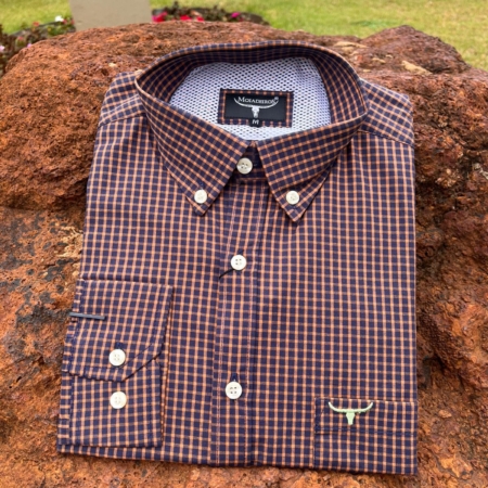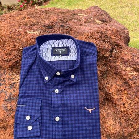 • CML2492 CAMISA ML XADREZ BIG AZUL ESCURO/LOGO MARROM