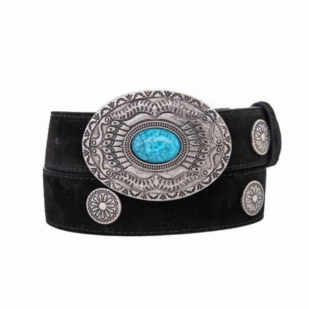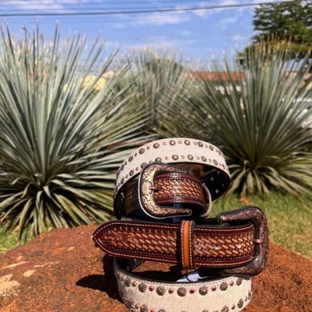 • CINTO COURO DESPONTADO BORDADO/CRAVINHO 7075