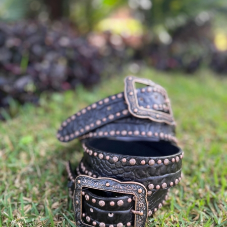 • CINTO FEMININO CROCO CRAVOS PRETO 6807 COBRE