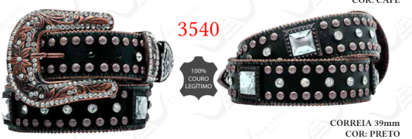 CINTO FEMININO APL.QUAD.STRASS E CRAVOS 3540